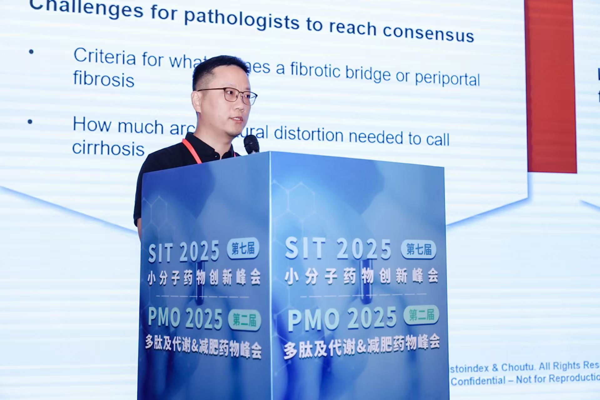 集团首席技术官兼中国区总经理滕霄博士受邀出席本次峰会,并发表题为“无染色成像和人工智能技术在MASH新药开发中的应用”的主题演讲,滕霄博士在演讲中系统介绍了基于二次谐波/双光子激发荧光(SHG/TPE)成像技术与人工智能算法的无染色数字病理平台,该技术可实现纤维化等组织学特征的连续量化评估,显著提升病理读片的一致性、灵敏度与可重复性,已在全球超过半数MASH的II期及III期临床试验中作为关键终点评估工具。
